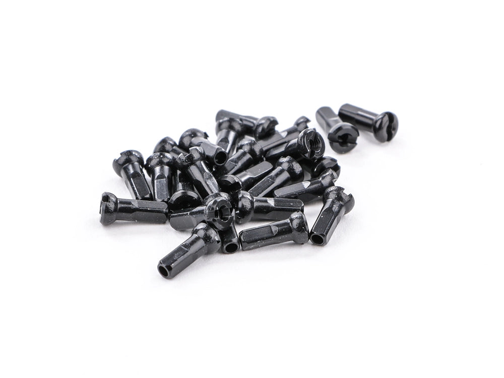 Nipples differ in a few aspects: height, diameter and material. Not every nipple fits on every spoke. Mostly nipples are made out of brass or aluminium, where brass is cheaper, more durable, but also the heavier option. Within performance wheels, aluminium is often the choice. However, there is a big range in quality when it comes to aluminium nipples. This depends on the type of aluminium and possible coating. Quality aluminium nipples have coating in order to prevent galvanic corrosion, a phenomenon where brass nipples are less prone to. A second thing to boost durability of aluminium nipples is the difference in length. This way they have more contact surface with the spoke to be more fatigue resistant. At TMWORKS, we choose to build with aluminium Sapim nipples. A brand that wields above industry standards when it comes to material choice, material treatment and coating. Read more.